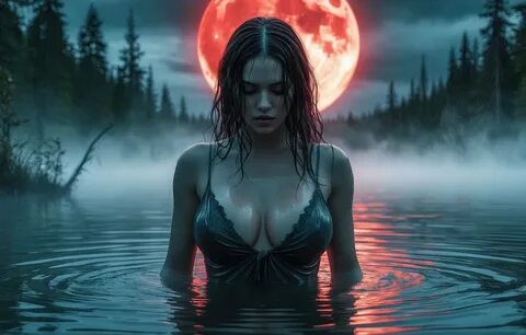 Обои girl, moon, water на телефон и рабочий стол, раздел ии арт, разрешение 2688